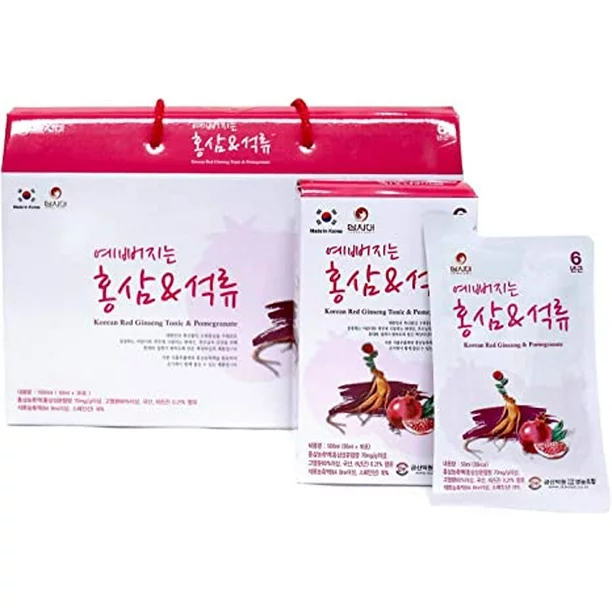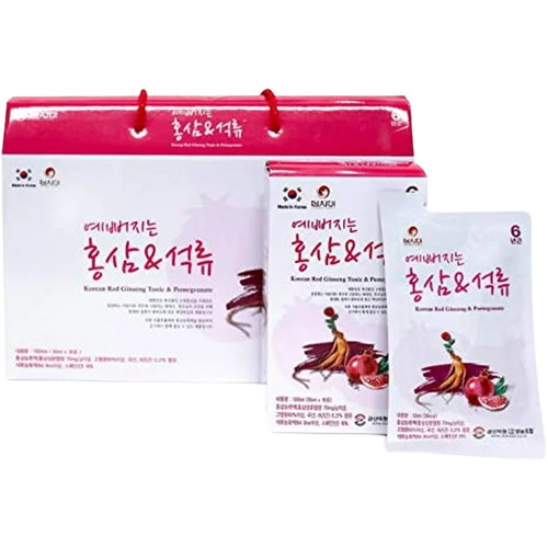 Nước Hồng Sâm Collagen Lựu Red Ginseng & Pomegranate Collagen được làm từ hồng sâm và lựu đỏ có công dụng rất tuyệt vời đối với sức khỏe. Giúp hồi phục cơ thể và tái tạo năng lượng. Ngoài việc tăng cường sức đề kháng, Lựu được kết hợp với Collagen giúp tăng độ đàn hồi của da, giúp làn da chị em phụ nữ luôn khỏe mạnh và tươi mới.