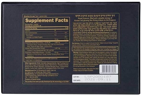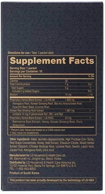 Cao Hồng sâm 30 gói/ hộp cao cấp sản xuất bởi Tập Đoàn LG Hàn Quốc – Thương hiệu uy tín được Chính phủ Hàn Quốc bảo hộ về chất lượng sản phẩm.