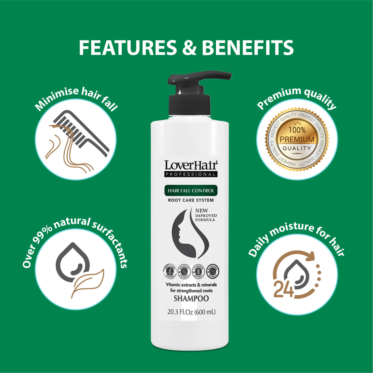 LOV HAIR PROFESSIONAL SHAMPOO 20.3 OZ (600ML) – HAIR FALL CONTROL (NEW IMPROVED FORMULA) -DẦU GỘI CHỐNG RỤNG TÓC
