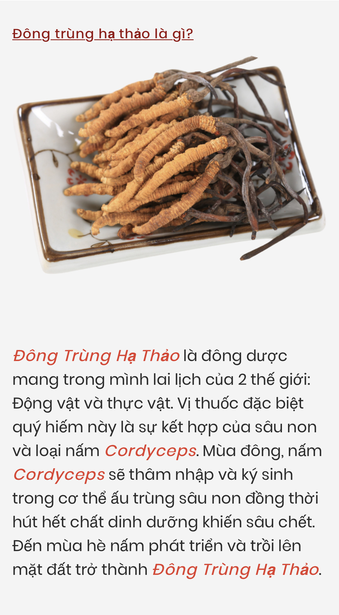 – Đông Trùng Hạ Thảo kết hợp Nấm Linh Chi đỏ đen là thuốc bổ quý hiếm dành cho người lớn tuổi gầy yếu, suy nhược cơ thể; người mới khỏi bệnh hiểm nghèo